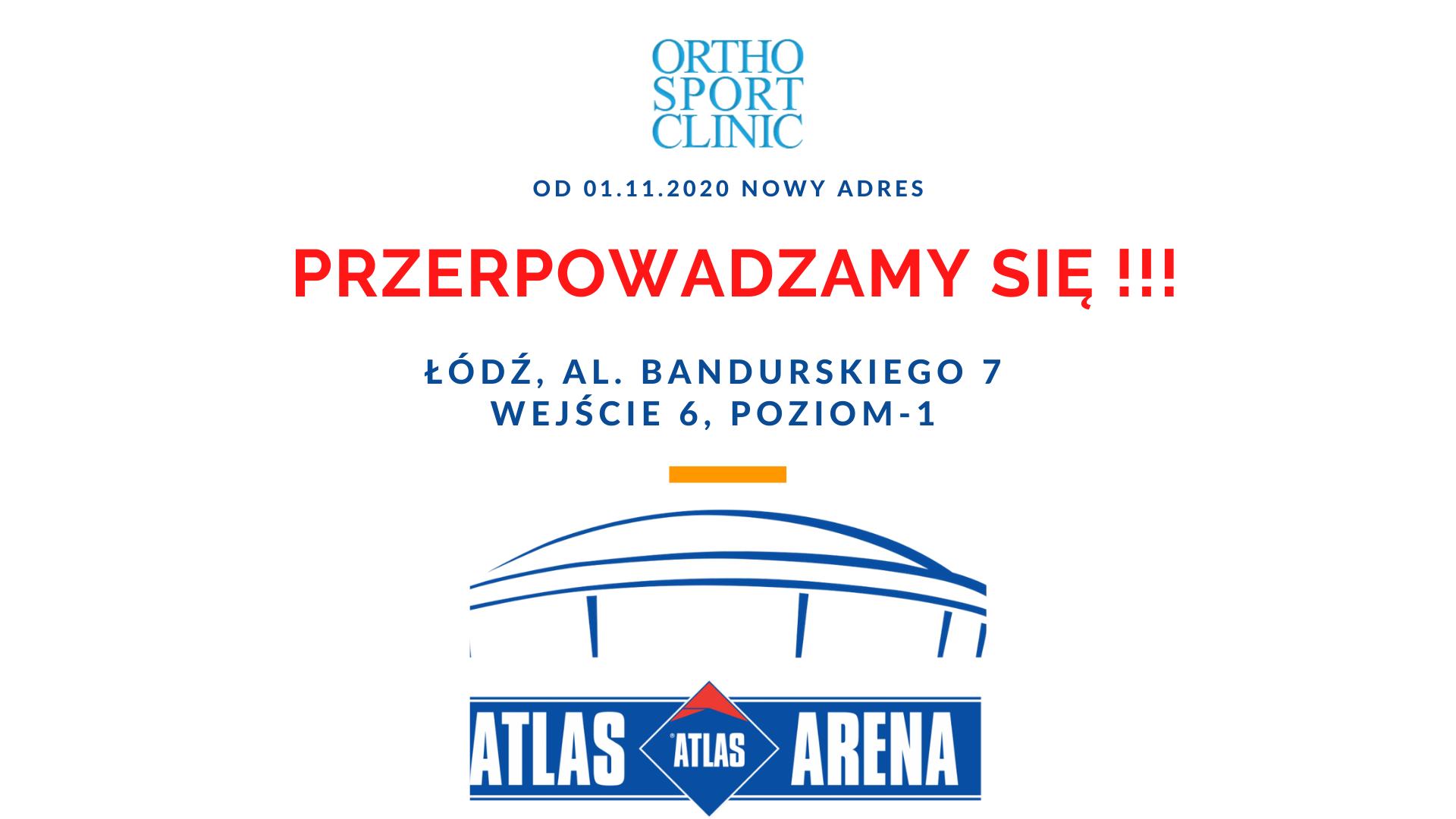 Z ogromną radością pragniemy przekazać, iż od 01.11.2020 r. Ortho Sport Clinic przenosi się do łódzkiej Atlas Arena.